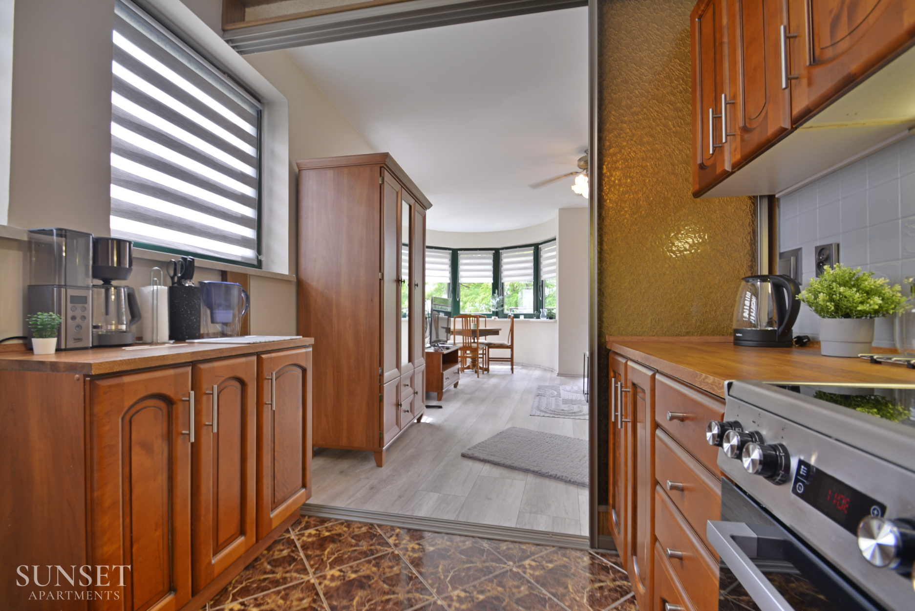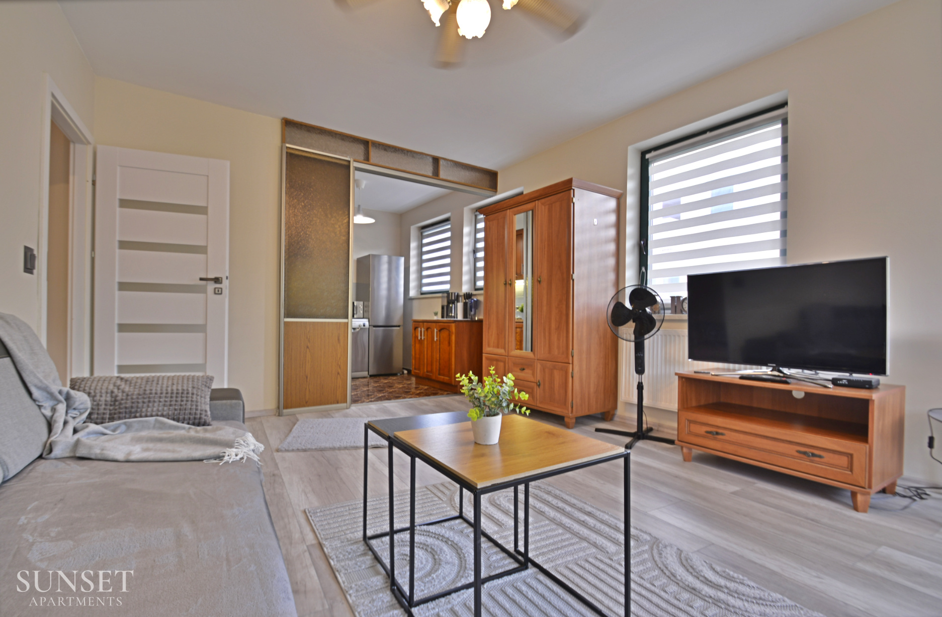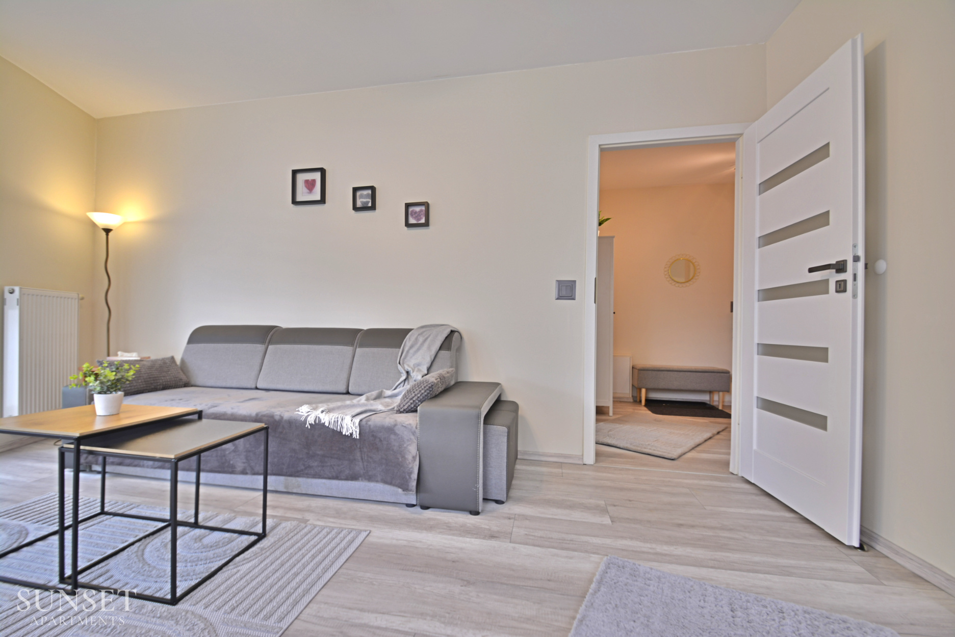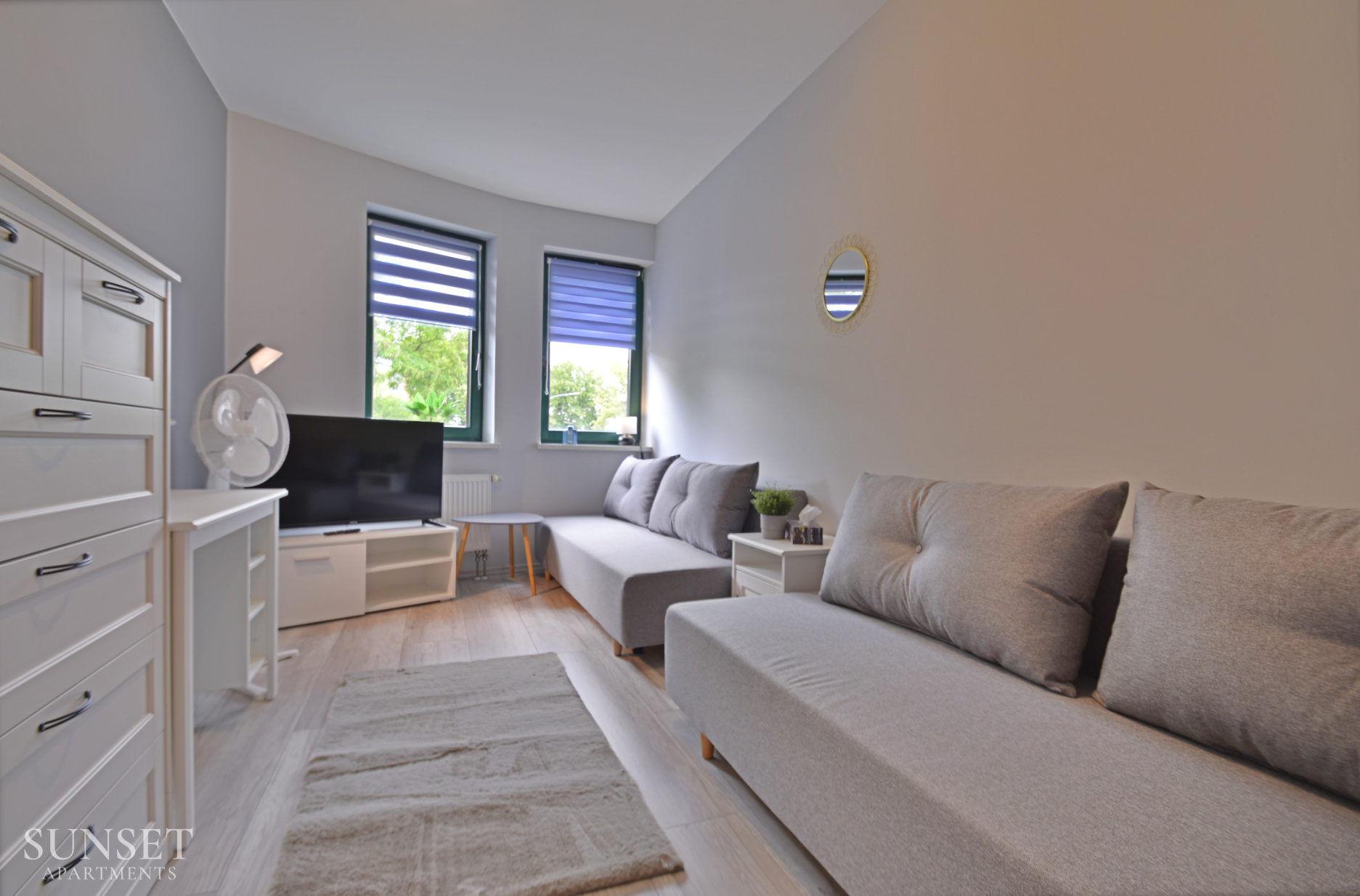 Die angebotene Wohnung besteht aus zwei Zimmern. An das sonnige, großzügige Wohnzimmer schließt sich der Küchenbereich an, der mit einer Spülmaschine ausgestattet ist. Das Wohnzimmer verfügt über ein bequemes Schlafsofa für zwei Personen und Zugang zum Balkon. Im zweiten Zimmer gibt es zwei ausklappbare Sofas und einen Fernseher. Das Badezimmer ist mit einer Waschmaschine ausgestattet, die einen Familienausflug noch angenehmer macht.