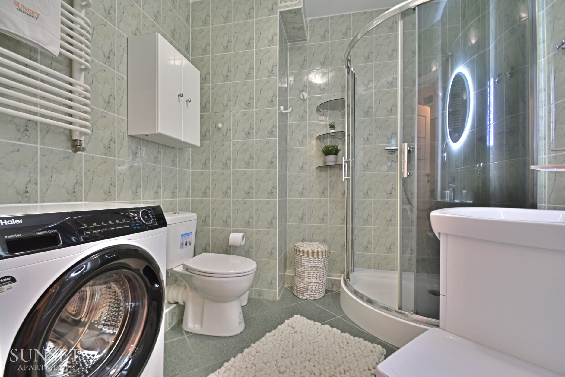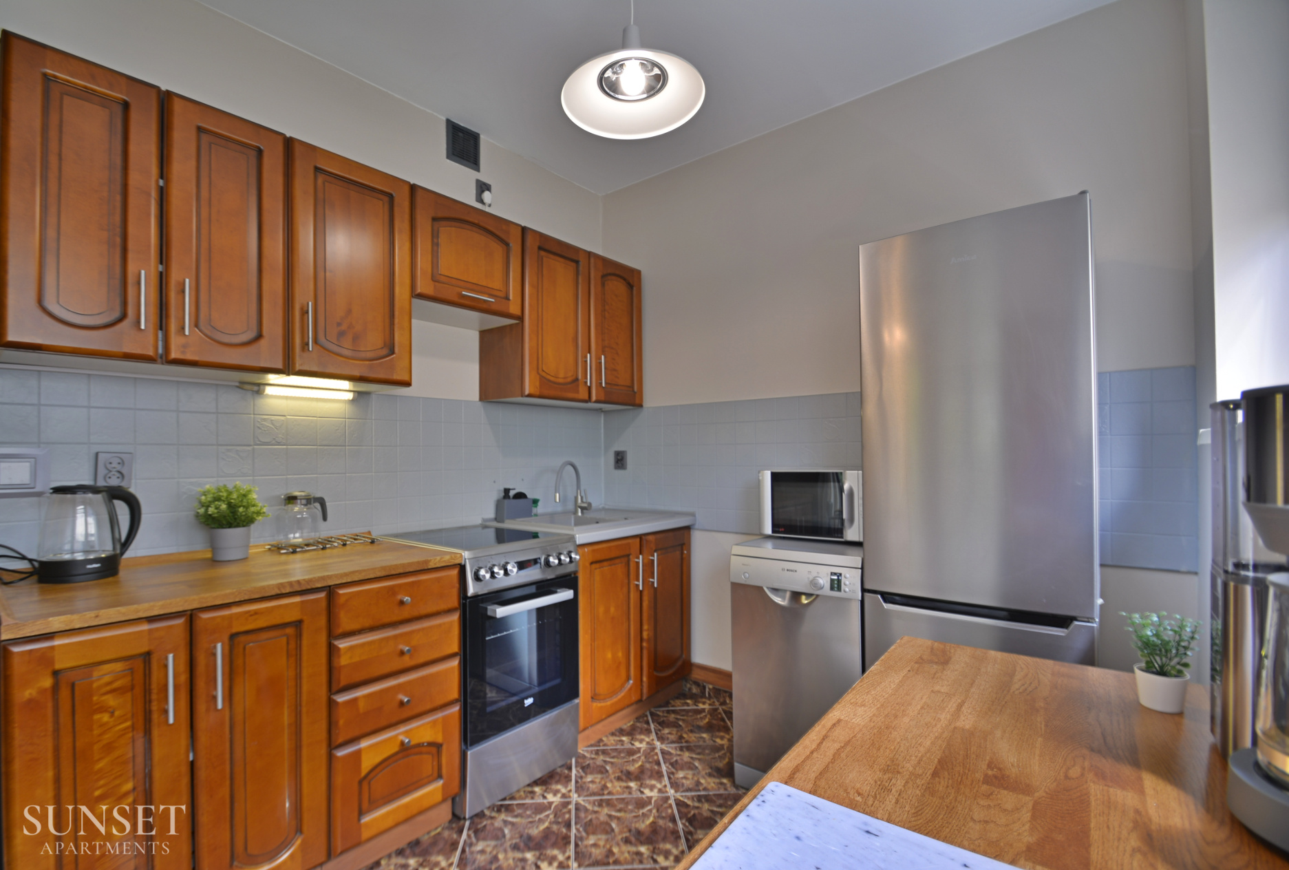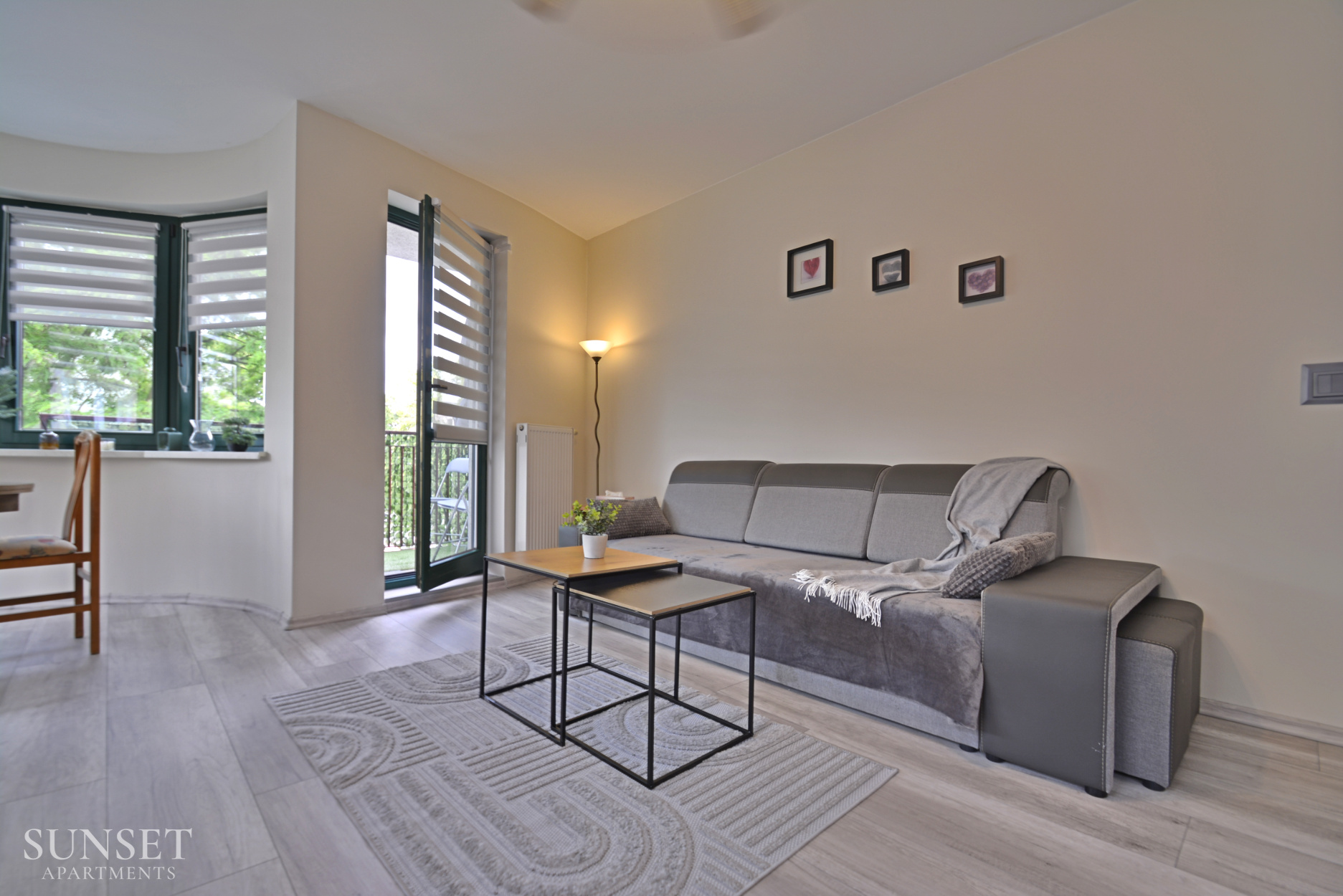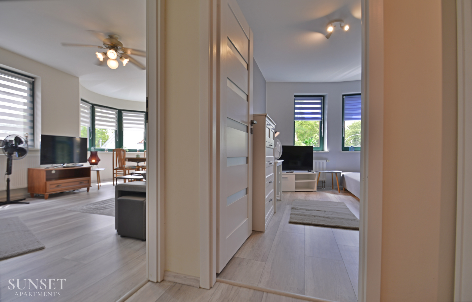 Die angebotene Wohnung besteht aus zwei Zimmern. An das sonnige, großzügige Wohnzimmer schließt sich der Küchenbereich an, der mit einer Spülmaschine ausgestattet ist. Das Wohnzimmer verfügt über ein bequemes Schlafsofa für zwei Personen und Zugang zum Balkon. Im zweiten Zimmer gibt es zwei ausklappbare Sofas und einen Fernseher. Das Badezimmer ist mit einer Waschmaschine ausgestattet, die einen Familienausflug noch angenehmer macht.