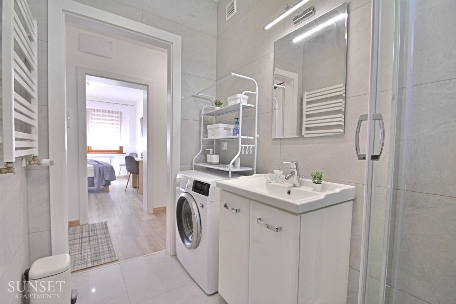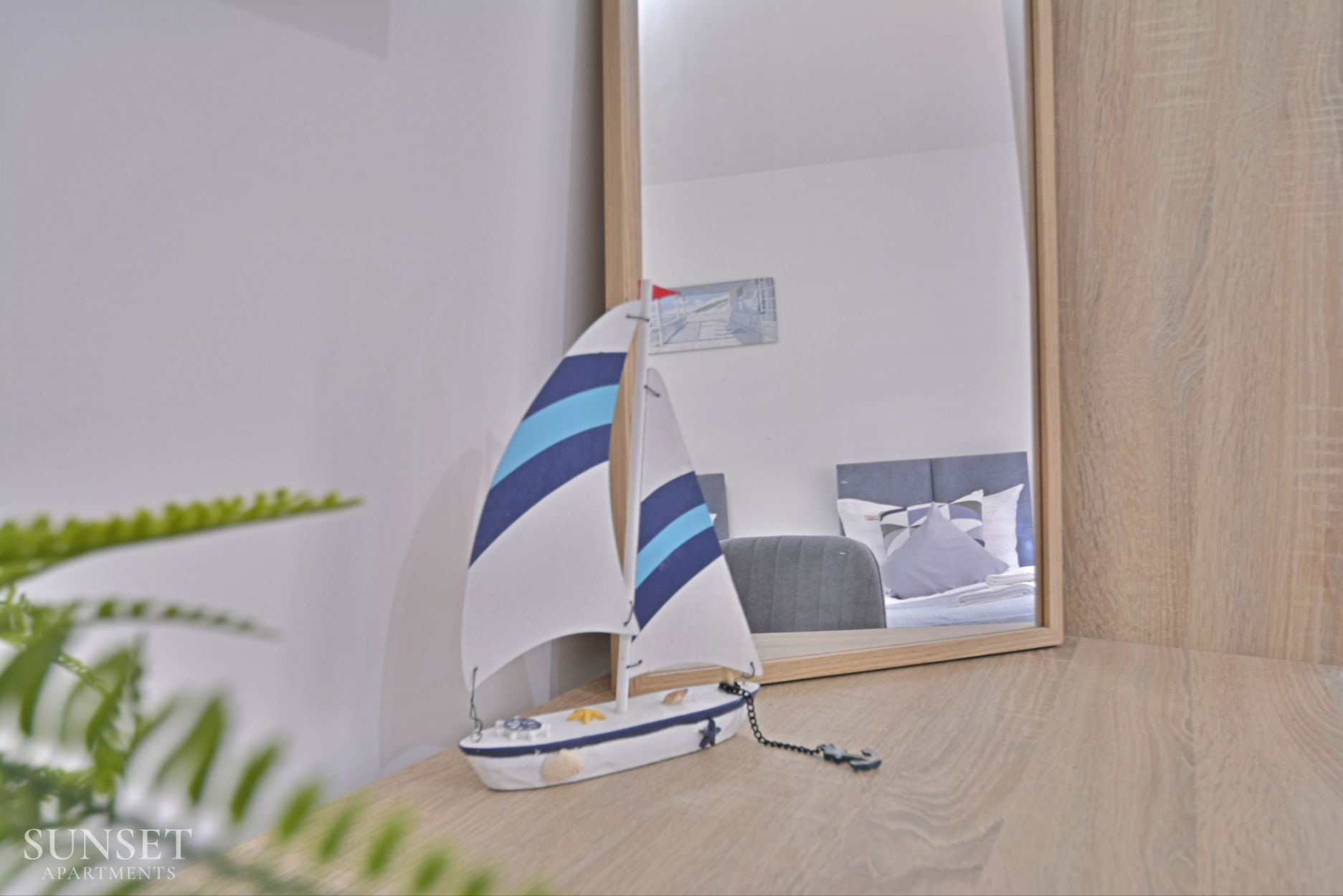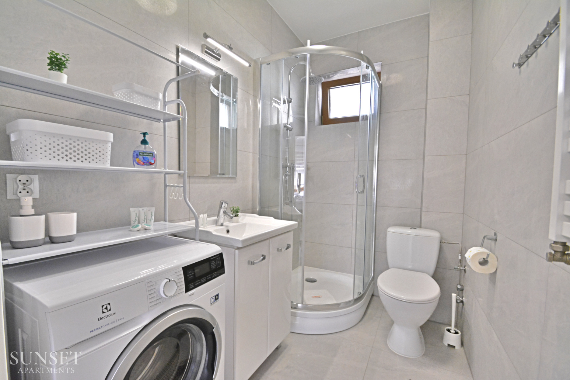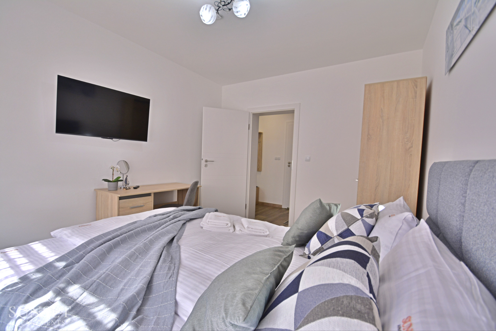 Das Apartment Nr. 2 ist ein ideales Angebot für Familien, ausgelegt für einen Aufenthalt von maximal 5 Personen. Die geräumige Wohnung besteht aus zwei separaten Schlafzimmern. Die bequemen Doppelbetten sind 160 cm breit. Das Wohnzimmer ist mit der Küchenzeile verbunden. Das Badezimmer ist mit einer Waschmaschine ausgestattet, die Ihren Aufenthalt noch angenehmer macht. In jedem Schlafzimmer gibt es einen Fernseher. Ein Parkplatz ist im Angebot nicht enthalten.