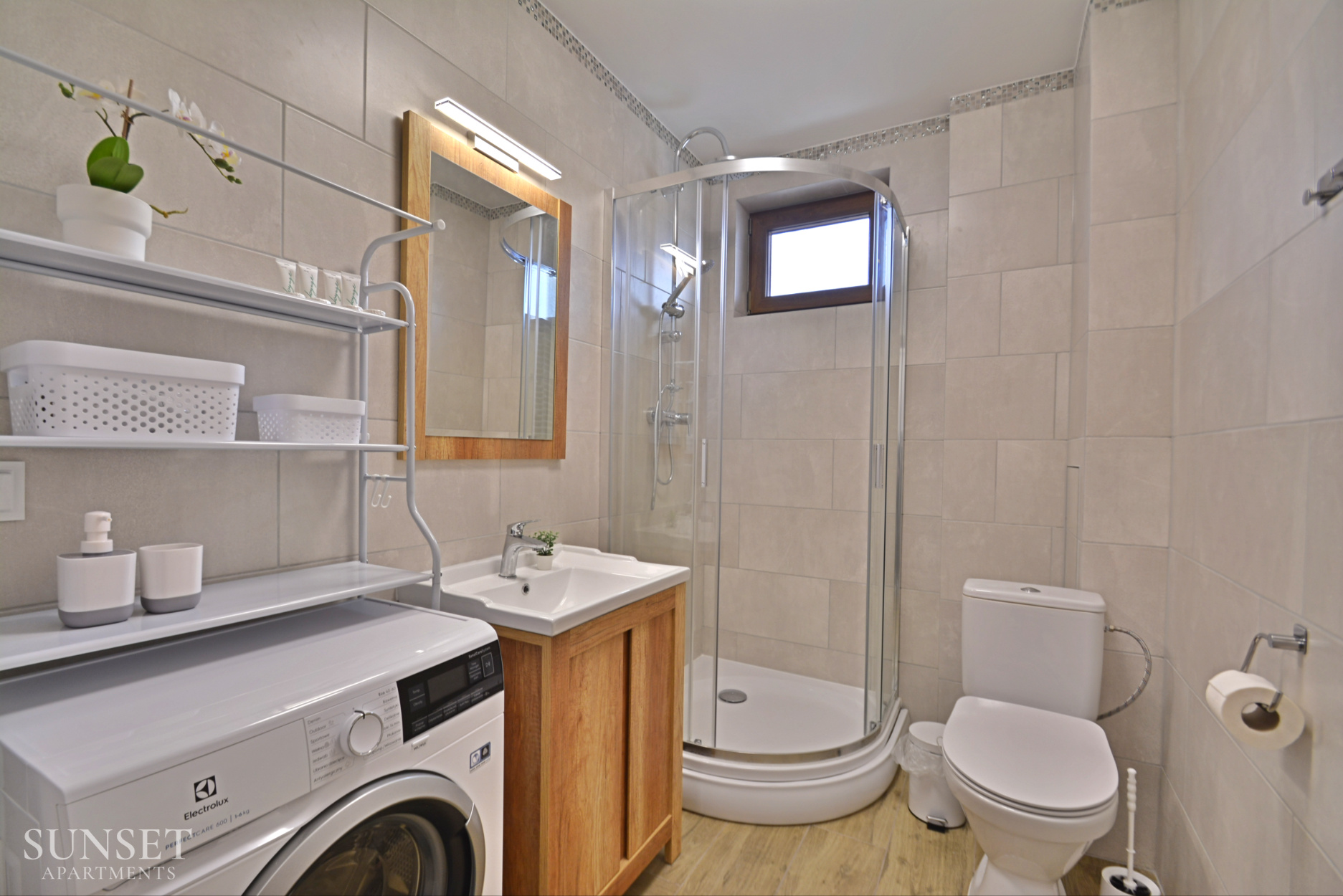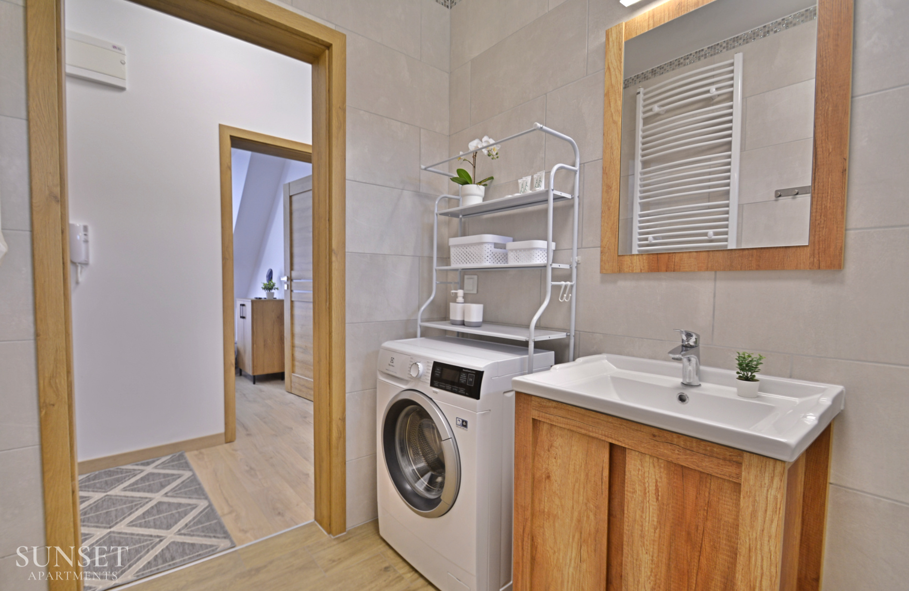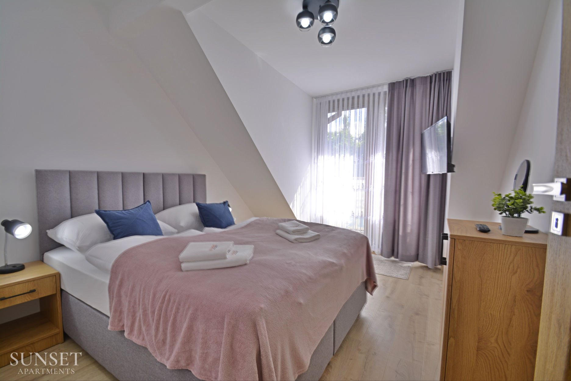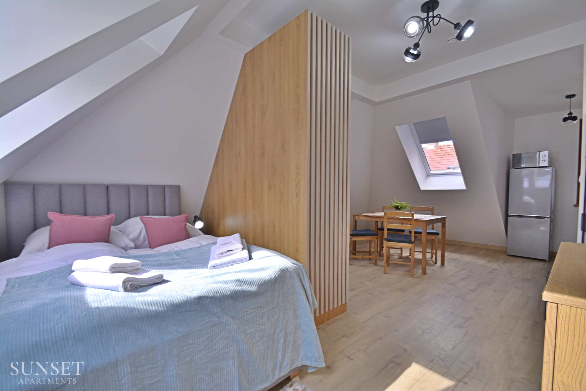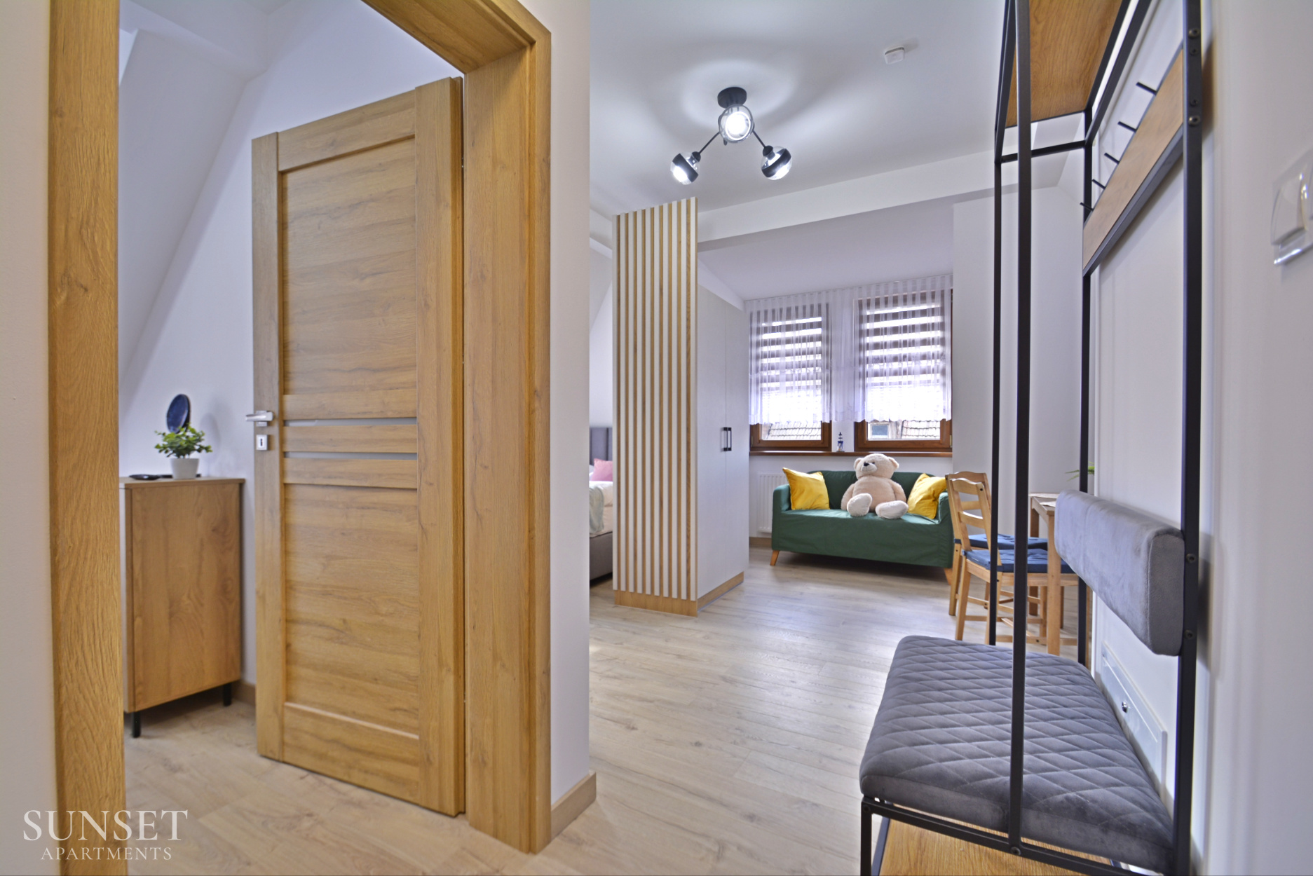 Das Apartment Nr. 6 ist ein ideales Angebot für Familien, ausgelegt für einen Aufenthalt von maximal 4 Personen. Die geräumige Wohnung besteht aus einem Schlafzimmer. Die bequemen Doppelbetten sind 160 cm breit. Das Wohnzimmer ist mit der Küchenzeile verbunden. Das Badezimmer ist mit einer Waschmaschine ausgestattet, die Ihren Aufenthalt noch angenehmer macht. Im Schlafzimmer gibt es einen Fernseher. Das Ganze ist in angenehmen, warmen Farben gehalten. Wohnung Nr. 6 und 5 liegen einander gegenüber. Ein Parkplatz ist im Angebot nicht enthalten.